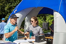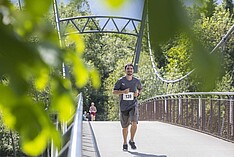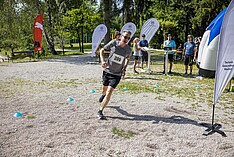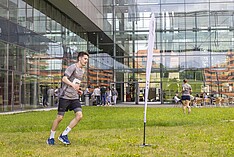 The starters of each team had to cover 600 metres on the board before the imaginary baton was handed over to the cyclists. The route for the cyclists led from the Waldbad to the footbridge in Kaltenhausen and across the campus of the FH back to the start/finish area of the Waldbad, where the boccia players were already waiting impatiently for their team colleagues. 3 x 3 boules had to be thrown into a target circle 7 metres away before handing over to the final runners. The almost 6-kilometre running course literally led over two laps through the campus to the inner courtyard and back to the Waldbad, where the team colleagues were already eagerly awaiting the finish line.