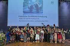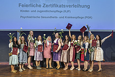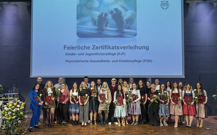 Auch die Absolvent*innen des akademischen Lehrgangs Psychiatrische Gesundheits- und Krankenpflege schlossen ihre Weiterbildung mit der entsprechenden Berufsberechtigung ab. Während der Ausbildung vertieften sie ihre fachlichen und persönlichen Kompetenzen, um Menschen mit psychiatrischen Erkrankungen professionell zu begleiten und ihre Selbstständigkeit im Alltag zu fördern.