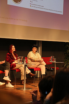 Die Podiumsgäste, darunter Barbara Blaha (Gründerin Momentum Institut), Viktoria Eibensteiner (Content Creator & Journalistin), Julia G. (Digital Creator) und Ebru Sokolova (Musikerin und Künstlerin), teilten ihre Erfahrungen und Perspektiven mit dem Publikum. Moderiert wurde die Diskussion von Julia Schwarzacher.