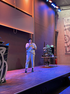 Ein besonderes Highlight war der Live-Auftritt der österreichischen Musikerin und Künstlerin Schwesta Ebra. Sie hat sich mit ihren gesellschaftskritischen Texten und ihrer einzigartigen Mischung aus Politsatire, Comedy und Rap einen Namen gemacht. Ihre Musik thematisiert oft soziale Ungleichheiten, Sexismus und toxische Männlichkeit, und sie nutzt dies als Plattform, um auf diese Probleme aufmerksam zu machen. Bei ihrem Auftritt im Audimax der FH Salzburg begeisterte Schwesta Ebra das Publikum mit ihrer kraftvollen und provokativen Musik.