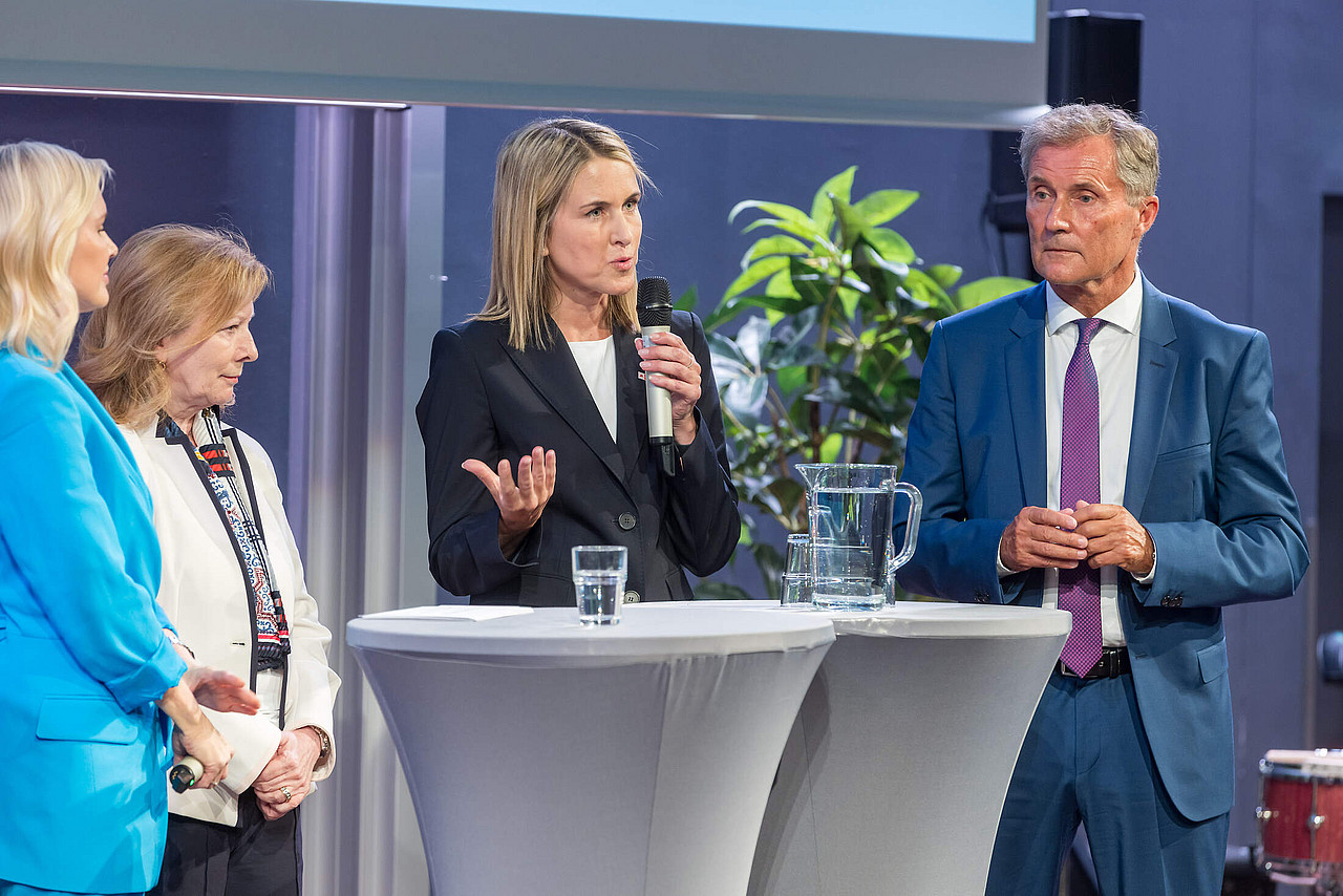 - Im Gespräch mit Vertreter*innen der Gesellschafter Landeshauptmann Wilfried Haslauer (Land Salzburg), Direktor Manfred Pammer (Wirtschaftskammer Salzburg), Direktorin Eva Stöckl (Arbeiterkammer Salzburg) und der Aufsichtsratsvorsitzenden Marianne Kusejko