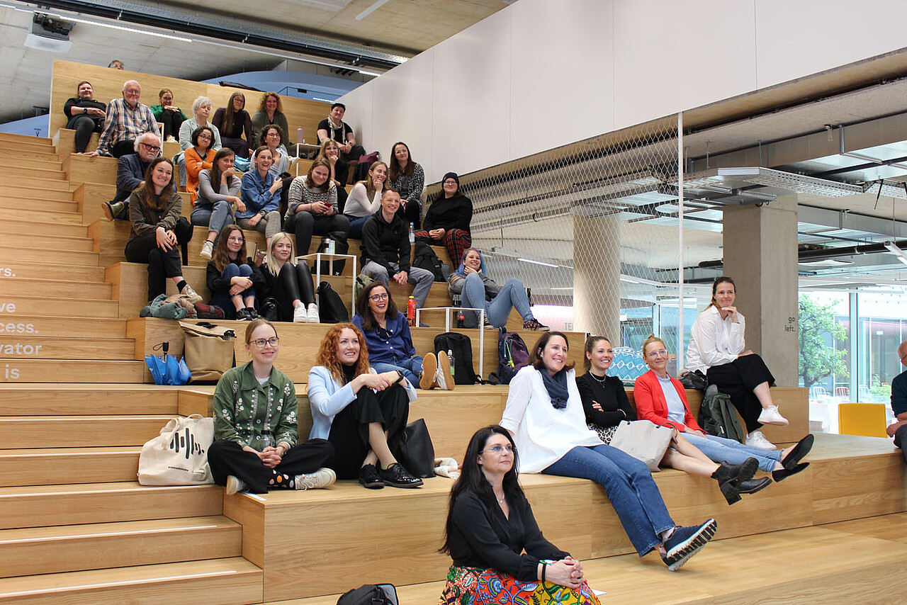 Zur Veranstaltung eingeladen waren Kursteilnehmer*innen, Familien und Freund*innen sowie Projektideengeber*innen, welche sich neben Einblicken in Studiengang und Projekte abschließend auch über Gespräche, Austausch und Vernetzung bei Snacks und Getränken freuten.