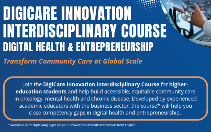 Der interdisziplinäre DigiCare-Innovationskurs für Studierende fördert die Entwicklung einer zugänglichen und gerechten Gesundheitsversorgung in den Bereichen Onkologie, psychische Gesundheit und chronische Erkrankungen. Der Kurs wurde von erfahrenen Lehrenden in Zusammenarbeit mit Wirtschaftspartnern entwickelt und unterstützt dabei, Kompetenzlücken in den Bereichen digitale Gesundheit und Unternehmertum zu schließen.