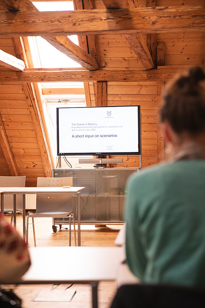 Nach einer Einführung in das Projekt und in die Szenario-Methodik diskutierten die Teilnehmenden im Format World Café mehrere Stunden lang intensiv über individuelles und kollektives Erinnern – im persönlichen, bildungspolitischen, lokalen und europäischen Kontext.