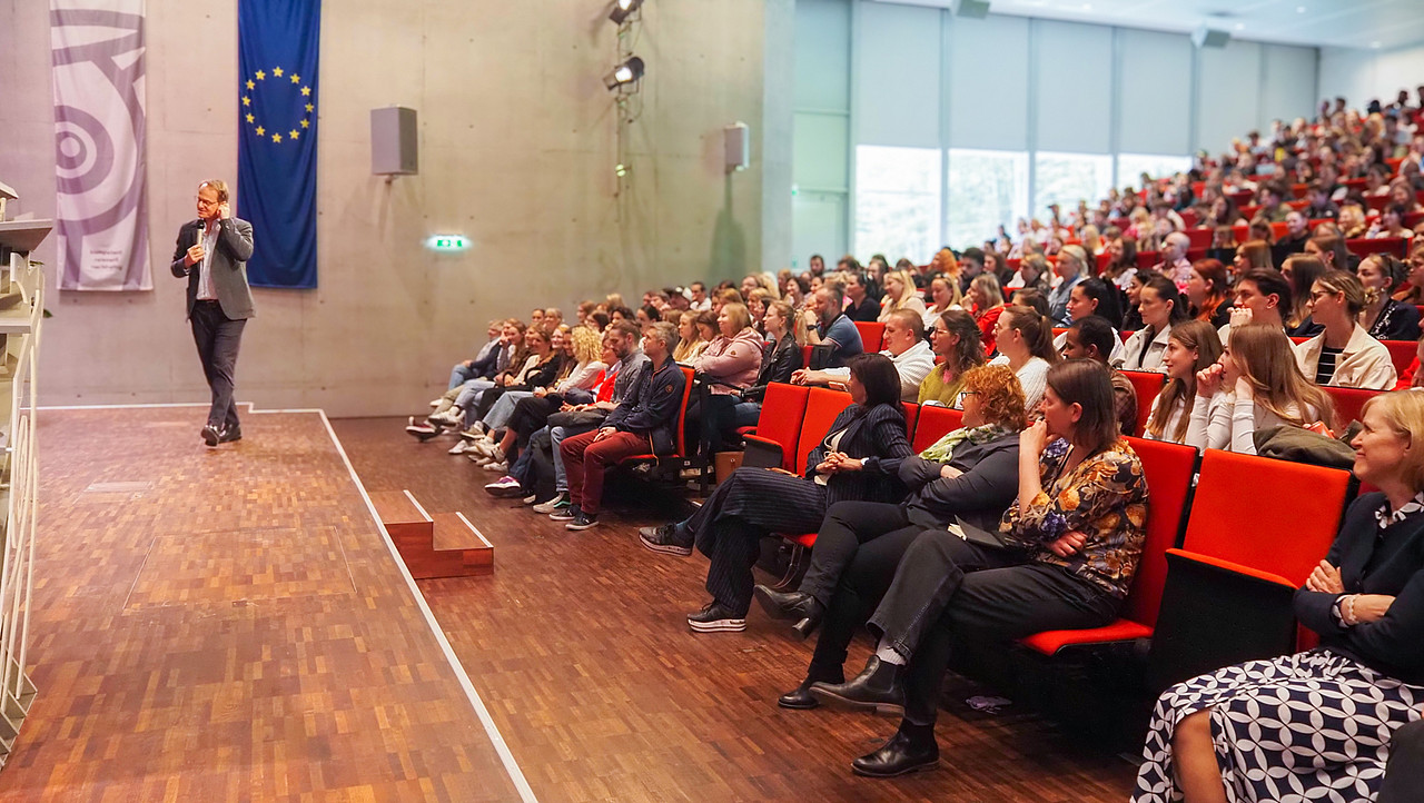 Markus Hengstschläger, Vorstand des Instituts für Medizinische Genetik an der Medizinischen Universität Wien und Forscher an der Yale University weiß, wie entscheidend es ist, Bewährtes effizient abzurufen und zugleich immer wieder Neuland zu betreten. In seinem Impulsvortrag sprach er darüber, warum die Balance wesentlich ist, um die unvorhersehbare Zukunft gestalten zu können. Dabei ist es wichtig, stets lösungsbegabt zu sein: gelerntes Wissen anzuwenden aber auch flexibel für eigene Ideen bleiben zu können.