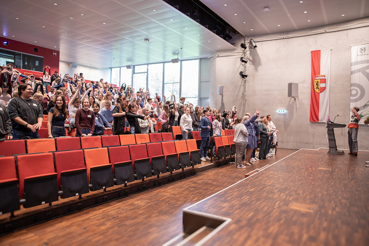 Den Auftakt bildete ein interaktiver Impulsvortrag im Audimax von Dipl.-Psych. Andrea Stitzel zum Thema „Klima, Körper, Kopf – Wege finden in stürmischen Zeiten“ mit wertvollen Einblicken dazu, wie der Gesundheitssektor Emissionen beeinflusst. Im Anschluss stand das „GW Puzzle“ im Mittelpunkt des Geschehens. In gemischten Teams arbeiteten Studierende aller Studiengänge gemeinsam an der Lösung der Aufgabe. Teamgeist, Kommunikation und Zusammenarbeit prägten die Atmosphäre. Das schnellste Team „SPEED AND SEVENTEEN“ konnte das Puzzle in 18,33 Minuten lösen und sich den ersten Platz sichern.