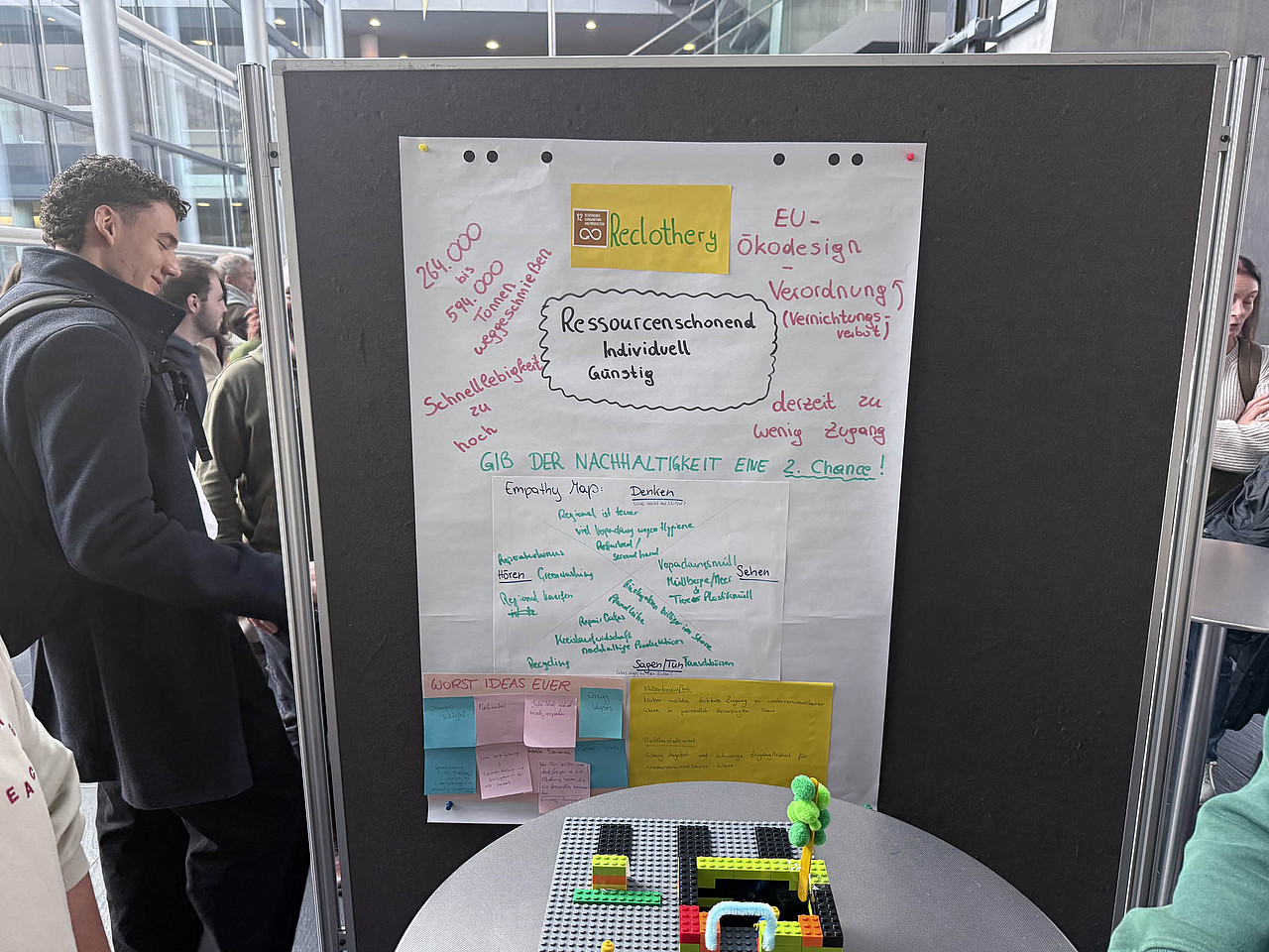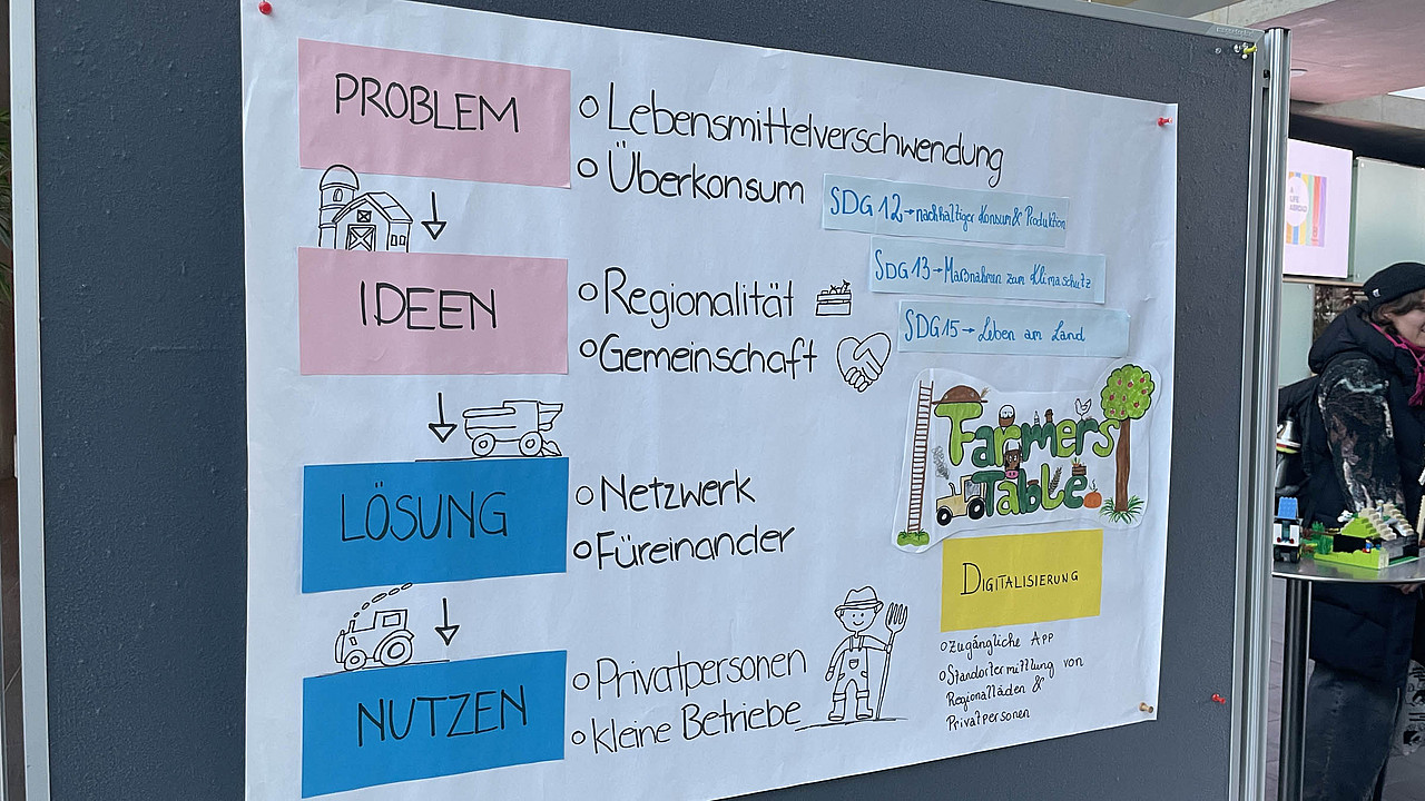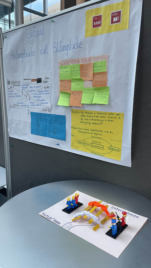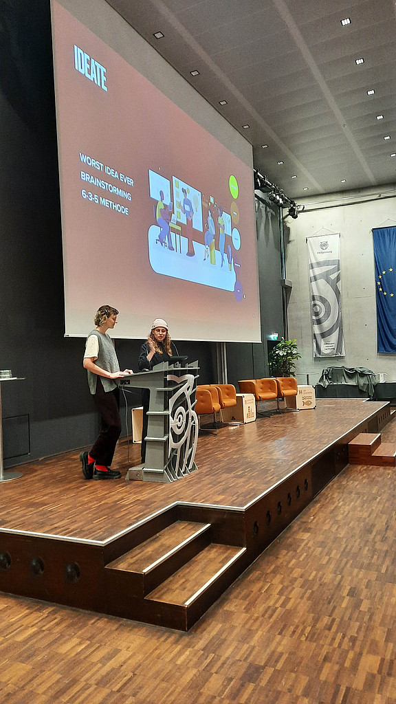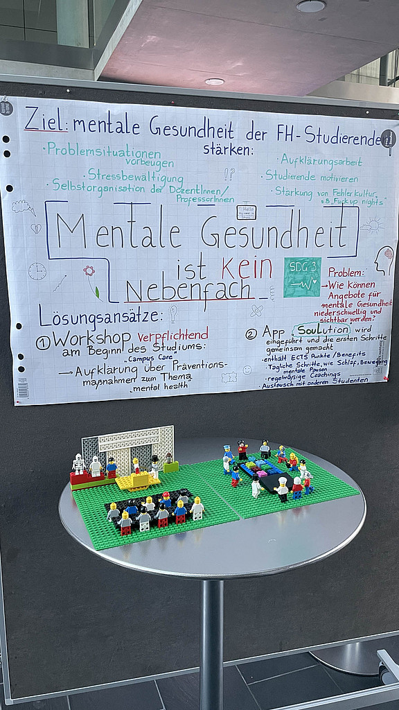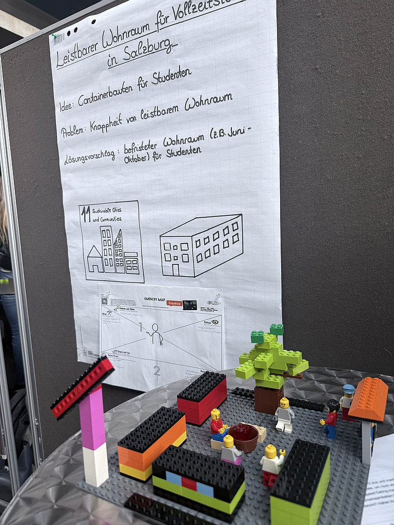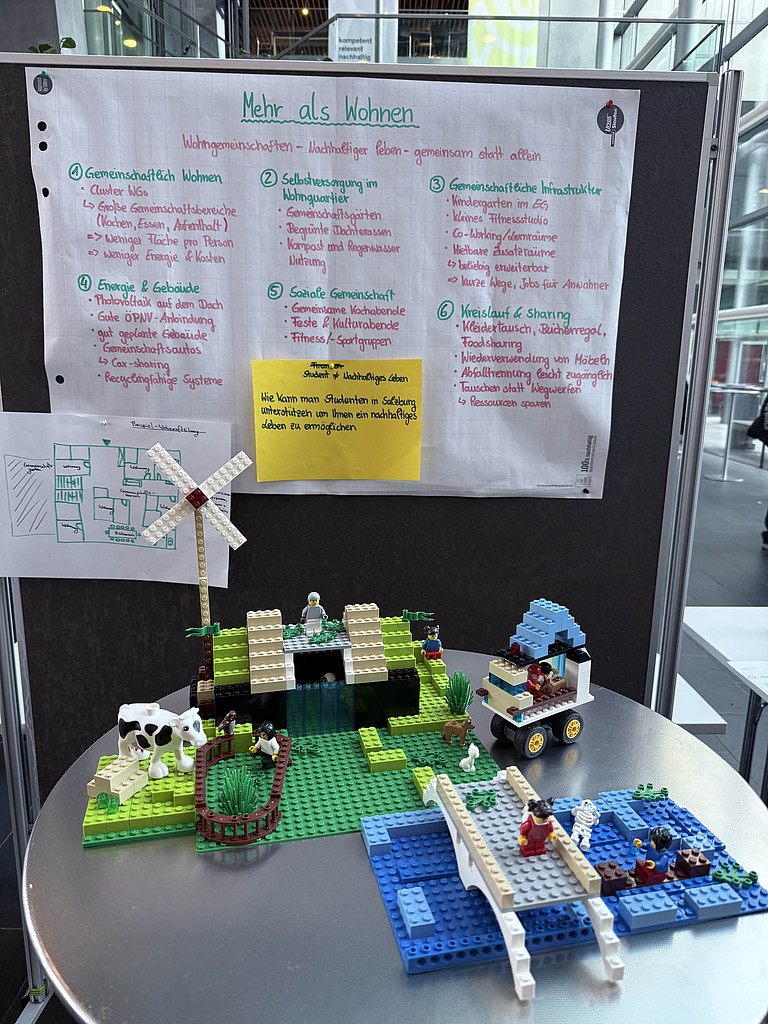 Der zweite Tag stand ganz im Zeichen von Interdisziplinarität und kreativer Problemlösung. In Kleingruppen entwickelten die Teilnehmer*innen Ideen und Lösungsansätze zu Herausforderungen aus den Vorträgen oder dem Greenovation Summit, einer Open-Space Veranstaltung der FH Salzburg, die zur Partizipation zur derzeit im Entstehen befindlichen Nachhaltigkeitsstrategie durchgeführt wurde.