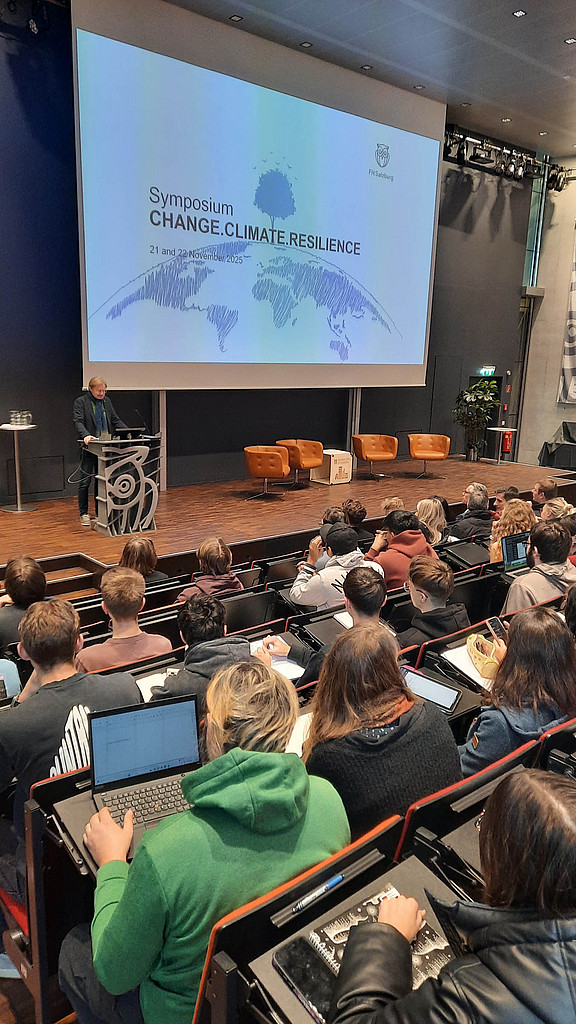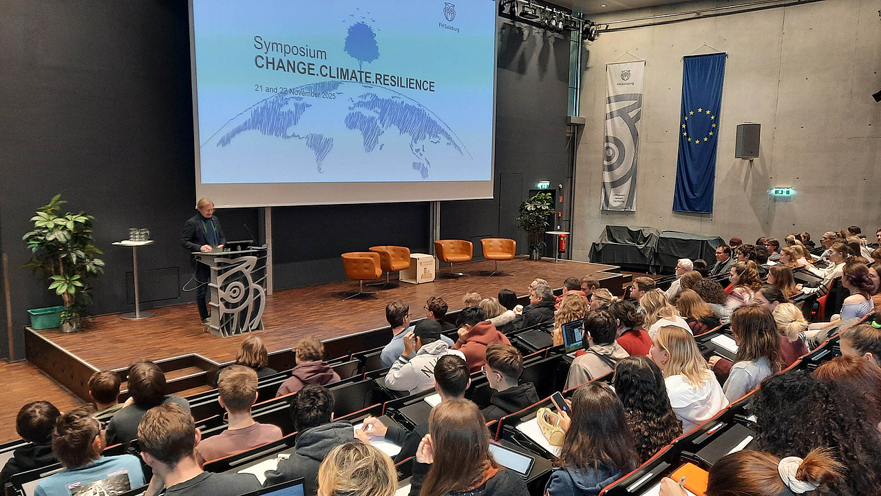 Am 21. und 22. November 2025 fand an der FH Salzburg bereits zum fünften Mal das Symposium Change.Climate.Resilience statt. Unter dem Leitthema „CHANGE“ bot die Veranstaltung eine Plattform für interdisziplinären Austausch und richtete sich insbesondere an erstsemestrige und alle anderen Bachelorstudierenden sowie Incomings.