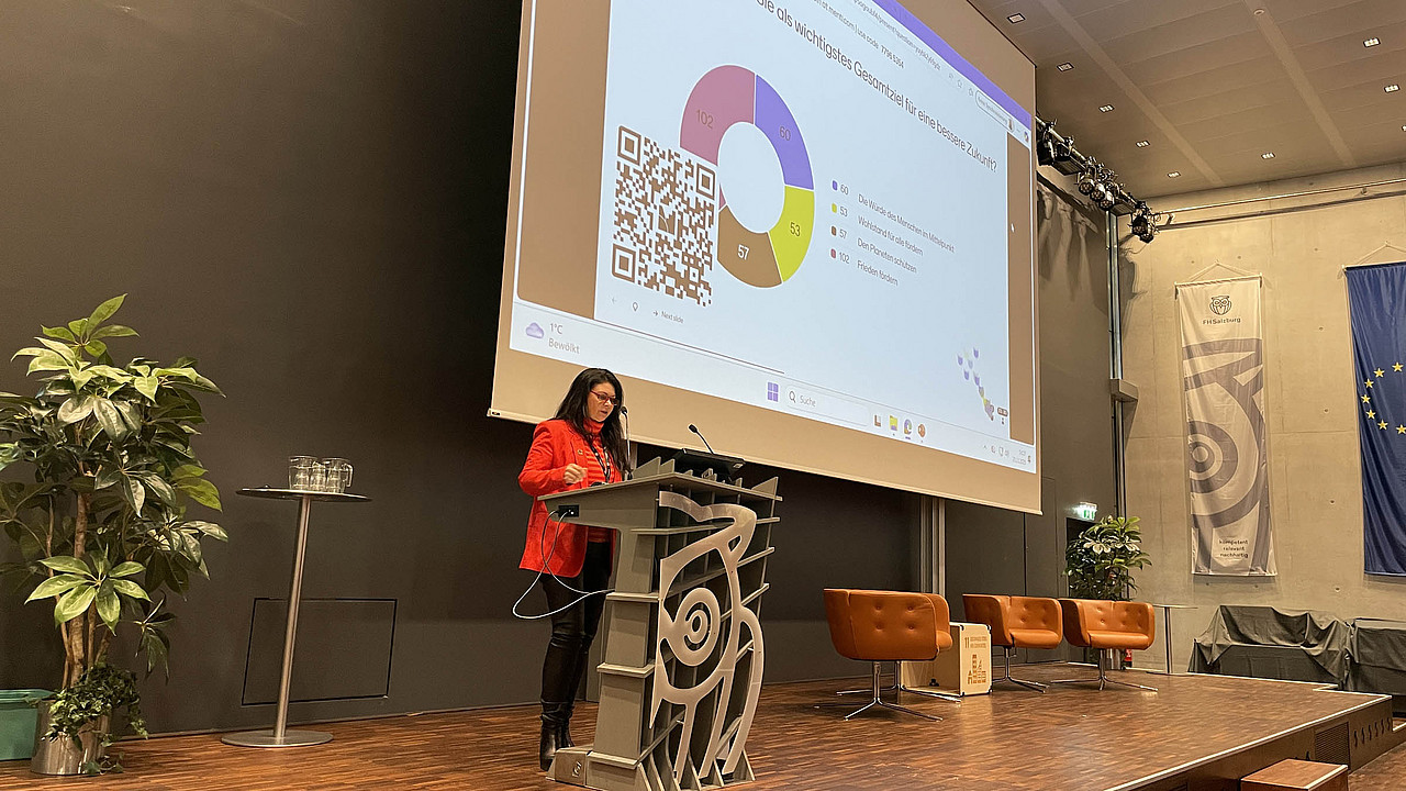Der erste Tag startete mit einer Einführung in die Sustainable Development Goals (SDG), gefolgt von spannenden Vorträgen, die das Thema „Change“ aus unterschiedlichen Perspektiven beleuchteten. . Die Vorträge gaben Einblicke in aktuelle Forschung und Lehre an der FH Salzburg und zeigten, wie Wandel als Motor für Innovation und nachhaltige Entwicklung genutzt werden kann. Der Tag war in einen deutschsprachigen und einen englischsprachigen Track unterteilt.