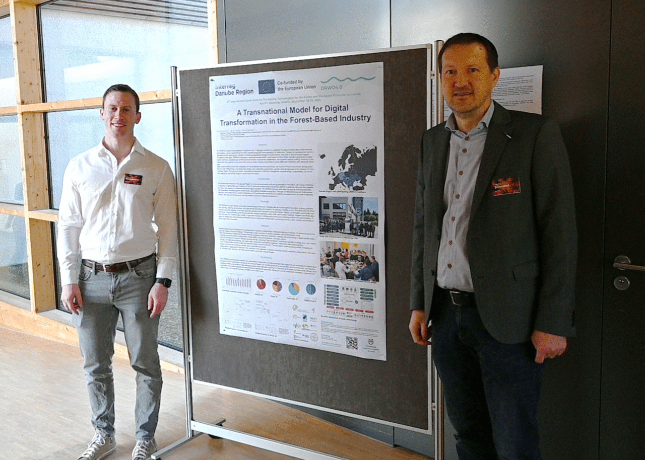 Anlässlich der Fachkonferenz „Processing Technologies for the Forest and Biobased Products Industries“ (PTF BPI) am Campus Kuchl durfte das Projektteam rund um Forschungsleiter Thomas Schnabel und Researcher Lukas Sommerauer Projektziele sowie aktuelle Projektthemen und -aktivitäten aus dem Forschungsprojekt DRWO4.0 – Danube Region Wood Industry Transformation Model towards Industry 4.0 einem internationalen Fachpublikum vorstellen.