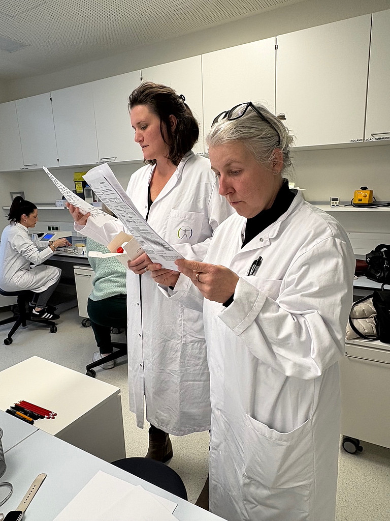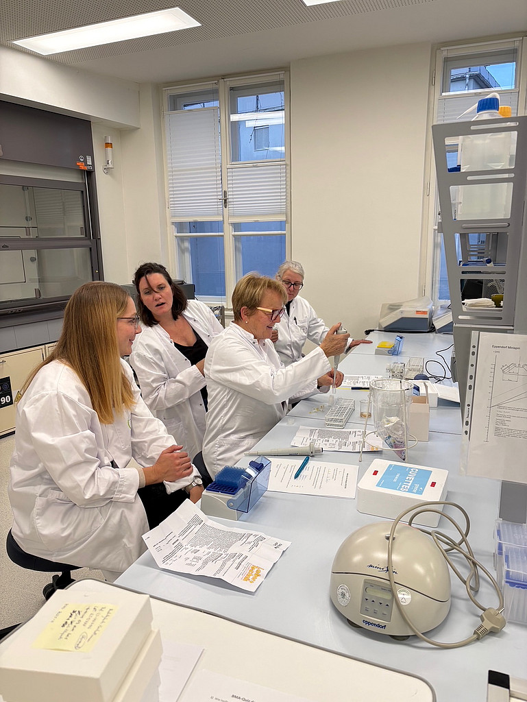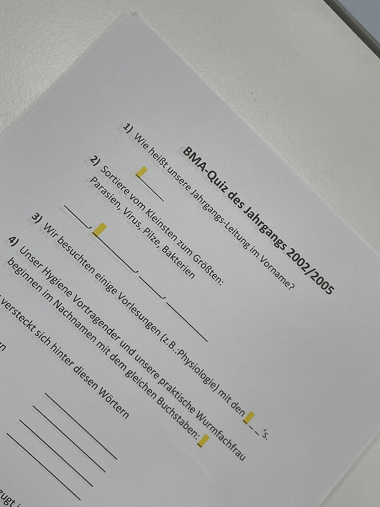 Auch der Spaß kam beim Jahrgangstreffen nicht zu kurz: Es wurden klinisch-chemische Analysen am Fotometer durchgeführt, histologische und hämatologische Präparate beurteilt sowie fachliche Aufgaben gelöst. Ergänzt wurde das Programm durch Parafilm-Weitziehen und einem Quiz mit Fragen zum Jahrgang und zur Biomedizinischen Analytik.
