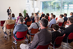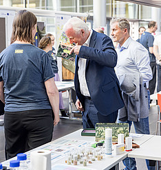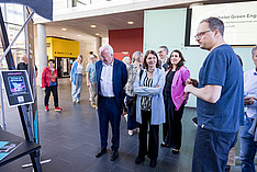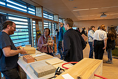 Bereits vor der offiziellen Eröffnung hatte die FH Salzburg zum Pre-Opening eingeladen. Zahlreiche Partner aus Wirtschaft und Politik sowie Absolvent*innen nutzten die Gelegenheit, sich vor der Eröffnung die sechs Forschungsbereiche am Campus Urstein näher erklären zu lassen.