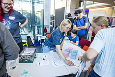Ab 17 Uhr waren Groß und Klein eingeladen, zu entdecken und zu erforschen. Diese Gelegenheit nutzten mehr als 600 Personen an der FH Salzburg. In einer Studieninfo-Lounge konnten sich Besucher*innen zudem über das breite Studienangebot der FH Salzburg informieren.