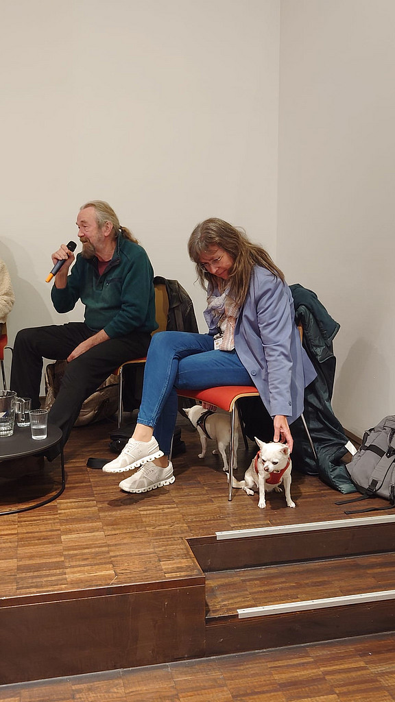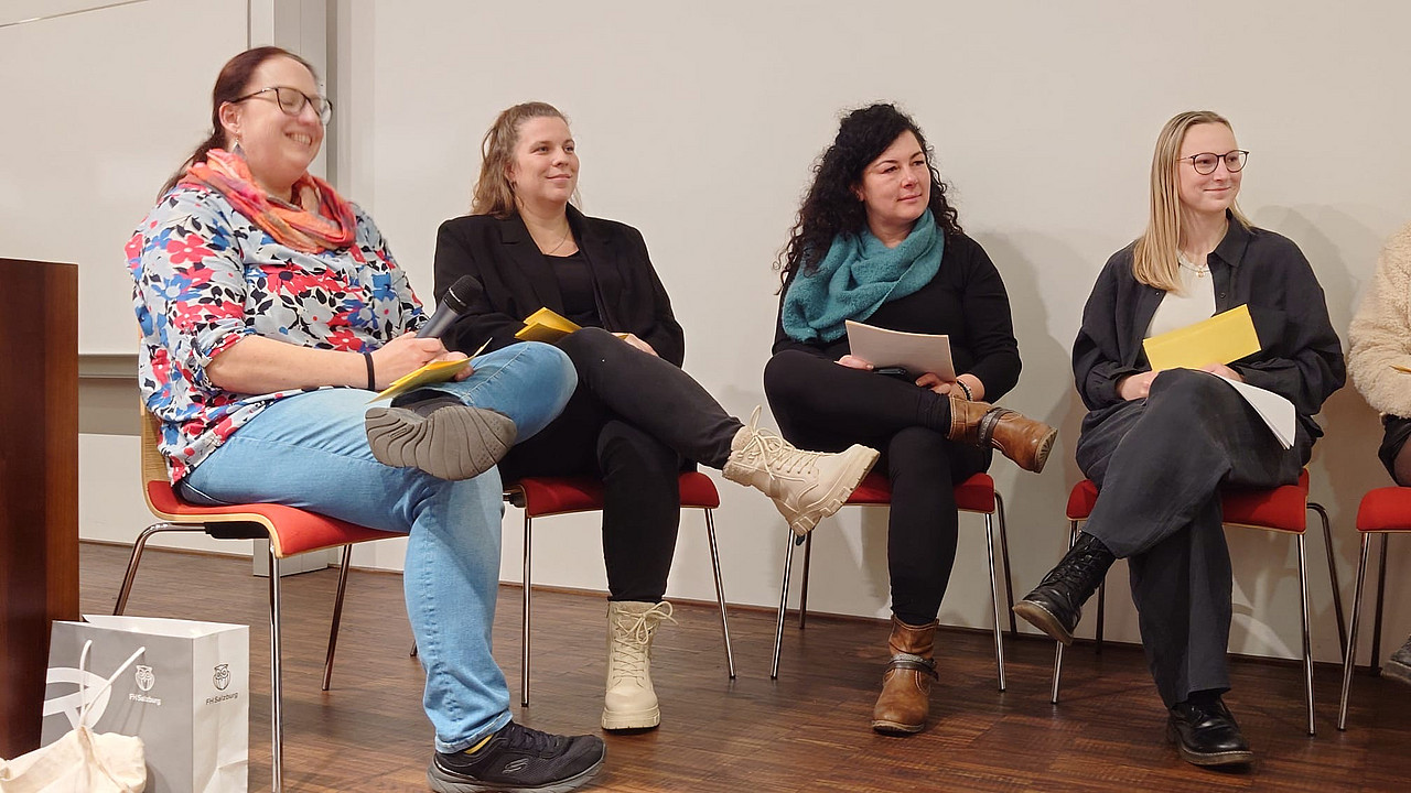 Die Veranstaltung war als Living Library konzipiert – ein Format, bei dem Menschen als „lebende Bücher“ persönliche Erfahrungen teilen und durch den direkten Dialog neue Perspektiven eröffnen. Unsere Studierenden reichten ihre Fragen im Vorfeld ein, ein fünfköpfiges Moderationsteam bündelte diese und führte das Publikum souverän durch den Abend.