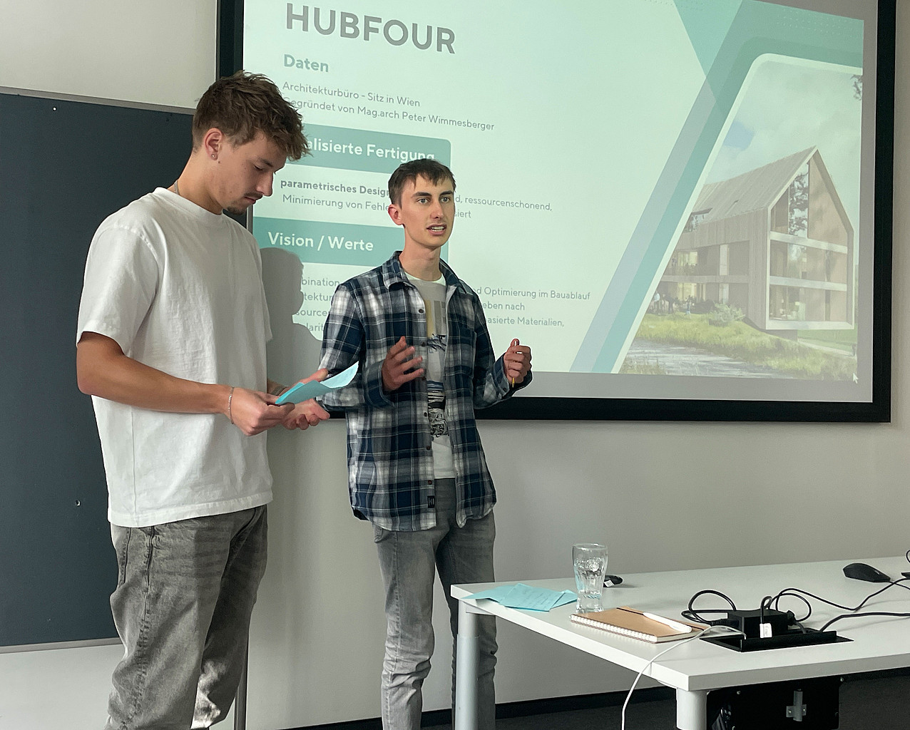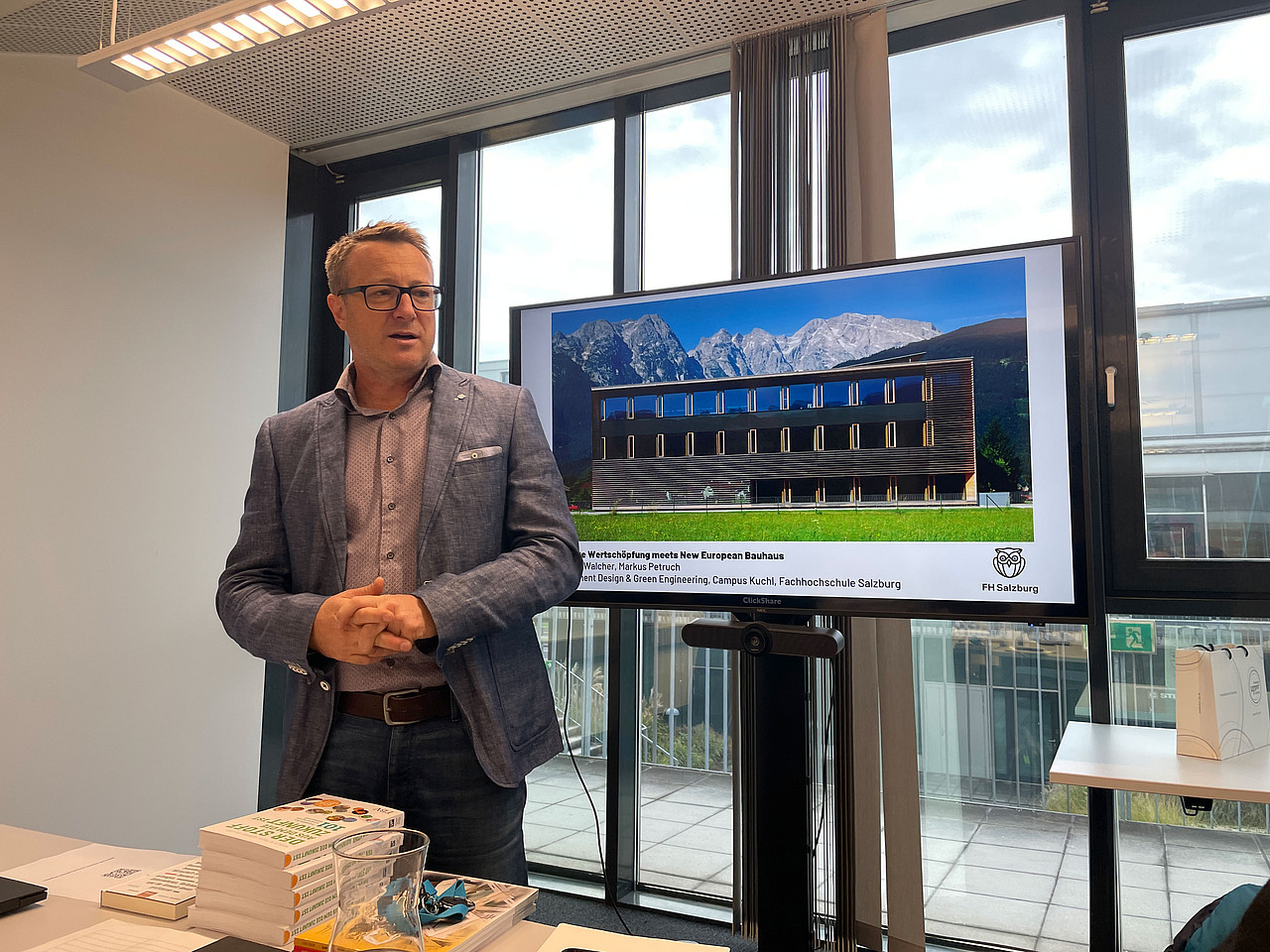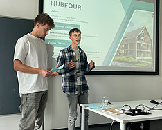 Die Unternehmenspartner brachten im Vorfeld reale Fragestellungen ein, mit denen sich die Studierenden übers Wochenende in einer Recherchephase vertraut machen – etwa zur regionalen Wertschöpfung, zur Wiederverwendung von Baustoffen oder zu innovativen Produktideen. Anschließend entwickelten sie darauf basierende Geschäftsmodelle zum Bau und Betrieb von Tiny Häusern aus regionalen Materialien (hubfour Architecture), zu einem sozial-integrativen Revitalisierungsprojekt auf dem Gelände einer ehemaligen Tischlerei (Unsere Tischlerei), Konzepte zum Betreiben von Mobilitätsstationen für regenerative Energie (Innovametall), wirtschaftlich Möglichkeiten der Betonteil-Wiederverwendung in der Architektur und Geschäftsmodelle für die zirkuläre Nutzung von Lehmbauplatten (Naturbo). Nach kurzen Pitches vor der gesamten Gruppe wurden die Konzepte mit den Unternehmensvertretern anschließend einzeln vertieft und weiterentwickelt – im ständigen Wechselspiel zwischen studentischer Kreativität und gelebter Unternehmensrealität. Die abschließende Diskussion zeigte, dass beide Seiten sich einiges für die Zukunft mitnehmen konnten, entweder neues Wissen in Sachen der nachhaltigen Wertschöpfung, oder als Einblick in die Herausforderungen, die es bei der Transformation zu echtem Kreislaufwirtschaften zu meistern gilt.