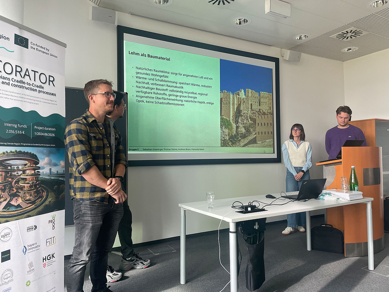 Die Workshopwoche verband die beiden Vorlesungen von Dominik Walcher (Zirkuläre Wertschöpfung) und Markus Petruch (Circular Economy), in denen die Studierenden die Grundlagen einer zirkulären Wirtschaftsweise und über 20 verschiedene Geschäftsmodelle der Circular Economy kennenlernten, um lineare Wertschöpfung in Kreisläufe zu überführen. Integriert wurden die Vorlesungen in das europäische Forschungsprojekt DECORATOR des Building Innovation Clusters Linz, welches mit Partnerinstitutionen in ganz Europa im Rahmen des New European Bauhaus (NEB) nachhaltige Lösungen für Architektur und Bauwirtschaft entwickelt. Das NEB wiederum ist eine Initiative der Europäischen Kommission, die den Green Deal mit den Werten Nachhaltigkeit, Ästhetik und Inklusion verbindet, um eine gebaute Umwelt zu schaffen, die lebenswert, schön und gerecht für alle ist.