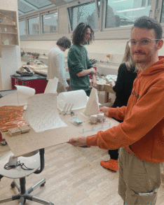 Wir sehen unsere Studierenden als aktive Gestalter*innen der Zukunft und daher ist es uns ein besonderes Anliegen, sie bereits während des Studiums zu befähigen, sich konstruktiv und visionär mit der Zukunft zu beschäftigen. Gosia Warrink war dafür mit ihrem Workshop „Spekulatives Design“ die ideale Sparringpartnerin. In Anlehnung an Paul Virilios Konzept der Ultrastadt und Zukunftsprognosen über große, weltweite Migrationsbewegungen, setzten sich Studierende mit der essentiellen Frage auseinander, wie eine Ultrastadt der Zukunft aussehen kann, die diese Ströme auffängt. Mit viel Kreativität und Begeisterung entstanden unglaublich spannende Prototypen, die in ihrer Beschaffenheit und Ausdruckweise vielfältig und einzigartig waren. Die Ideen und Konzepte werden im Juni in einem größeren Rahmen präsentiert – stay tuned.