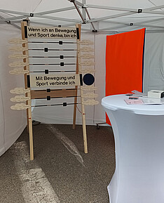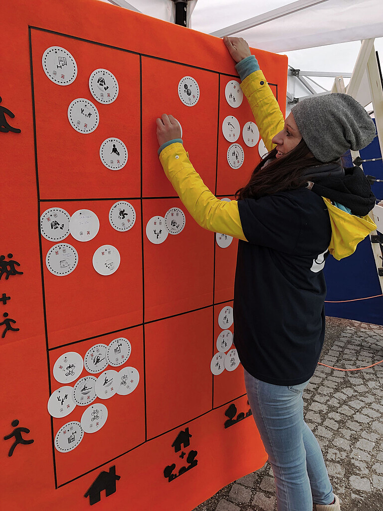 An 4 Tagen, an 4 verschiedenen Orten im Stadtteil Lehen, konnten die Bürger*innen ihre Bewegungsvorlieben an 5 Stationen spielerisch mitteilen. Dabei ging es um: bevorzugte Bewegungsarten, Bewegungsorte und -wege, aber auch um Herausforderungen, die sich ergeben und um mögliche Lösungen, um mehr Bewegung in den Alltag zu integrieren. Die anonyme Teilnahme dauerte in etwa 15 Minuten und war kostenlos. Als Dankeschön für die Teilnahme erhielten die Teilnehmenden einen 10€ Lebensmittelgutschein, der in teilnehmenden Geschäften im Stadtteil Lehen einlösbar war.