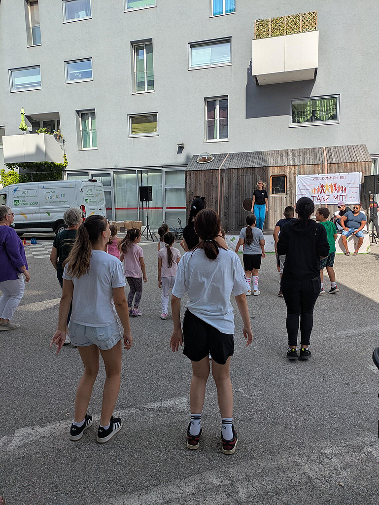 Unser Projekt „Tanz mit!“ hat Musik, Tanz und Bewegung verbunden. Damit wollten wir Menschen unterstützen, die im Alltag wenig Möglichkeiten haben, etwas für ihre Gesundheit zu tun. Vor allem Frauen, Familien mit Kindern, Senior*innen und Menschen mit Behinderungen waren eingeladen mitzumachen und natürliche alle die Lust hatten.