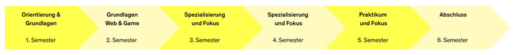 Team- und Projektmanagement sowie wirtschaftliche Grundlagen für Web- und Games-Branche. Ein optionales Auslandssemester im 4. Semester bietet internationale Erfahrung und stärkt interkulturelle Kompetenzen.