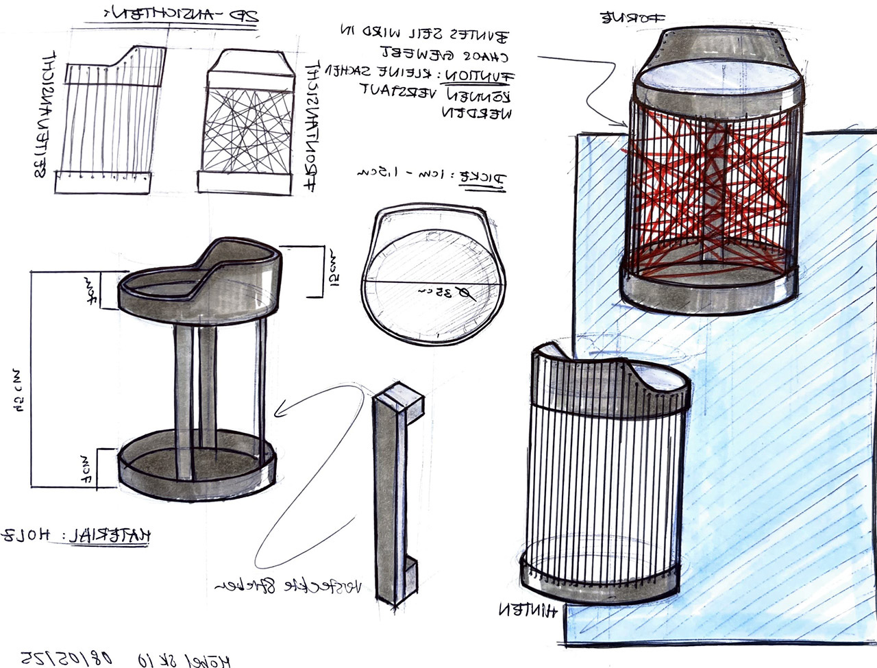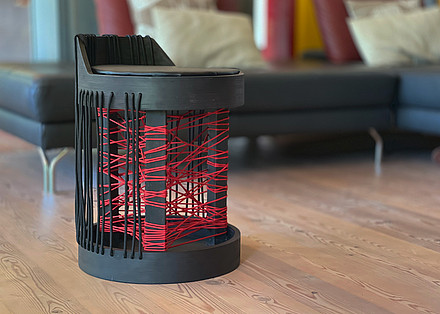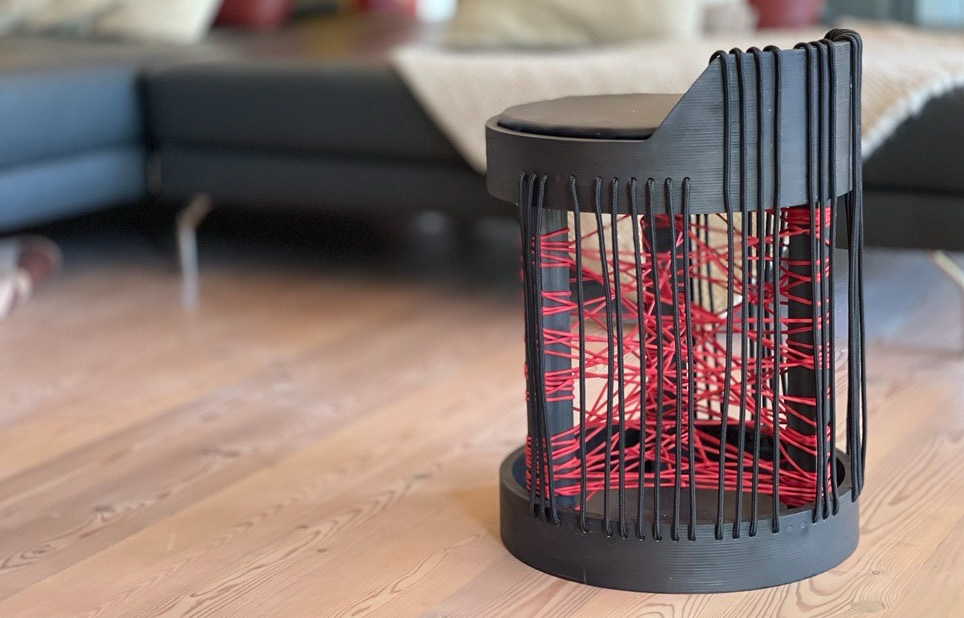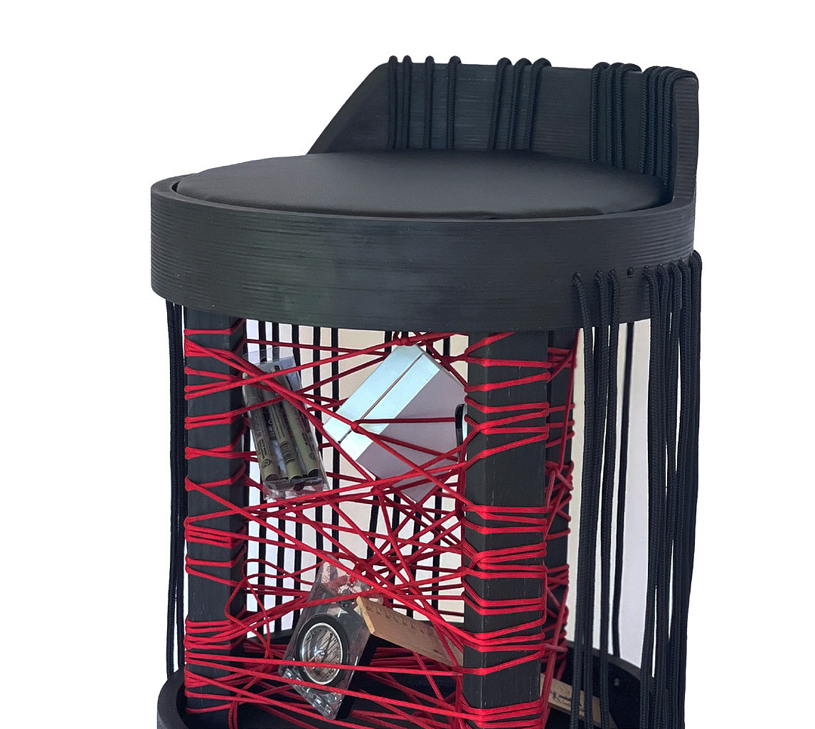 Der Two-in-One-Hocker Cháo („Nest“) vereint Funktionalität mit symbolischer Tiefe. In der Mitte des Hockers spannt sich ein verwobenes Netz aus roter Schnur – ein scheinbares Chaos, das dennoch Ordnung schafft. Dieses „Nest“ dient als flexibler Stauraum für kleine Gegenstände, lose Alltagsdinge. Cháo ist nicht nur eine Sitzgelegenheit, sondern auch ein Ort der Sammlung – verspielt und durchdacht.