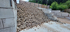 Das Forschungsprojekt CICO – Circular Concrete an der FH Salzburg beschäftigt sich mit diesen Fragen und untersucht unter anderem, wie wir Baustoffe heutzutage schon so produzieren, dass sie in Zukunft einmal wiederverwertet werden können. Masterstudent und wissenschaftlicher Mitarbeiter Helmut Radauer erforscht gemeinsam mit dem Salzburger Unternehmen Isospan das Recyclingpotenzial von Abbruchmaterial. Isospan stellt mineralisch gebundene Mantelsteine aus Holzspänen her („Holzbeton“), die dank geringem Energieaufwand in der Herstellung und dem CO2-Speichereffekt des Holzes eine ökologische Bauweise ermöglichen – und theoretisch auch wieder in die Produktion neuer Steine eingespeist werden können. Um zu erforschen, wie hoch der Anteil des Altmaterials an der Herstellung neuer Steine sein kann, stellt Helmut Prüfkörper her, die zu 50 bis 75 Prozent alte und zerkleinerte Holzspansteine beinhalten. Gemeinsam mit Johannes Jorda, wissenschaftlicher Mitarbeiter am Campus Kuchl, untersucht er diese in den Laboren am Standort auf ihre mechanischen und physikalischen Eigenschaften, allen voran ihre Festigkeit. „Die Idee ist, dass am Ende der Nutzungsdauer eines Gebäudes, nach 50 Jahren oder mehr, die alten Mantelsteine abgefräst werden und dieses Material mit Zement zu neuen Steinen verarbeitet wird. Wir wollen nun in diesen Vorversuchen herausfinden, wie sich diese ‚Recyclingsteine‘ aus Holzbeton verhalten, sodass man das Verfahren auf einen industriellen Maßstab skalieren kann“, so Helmut.